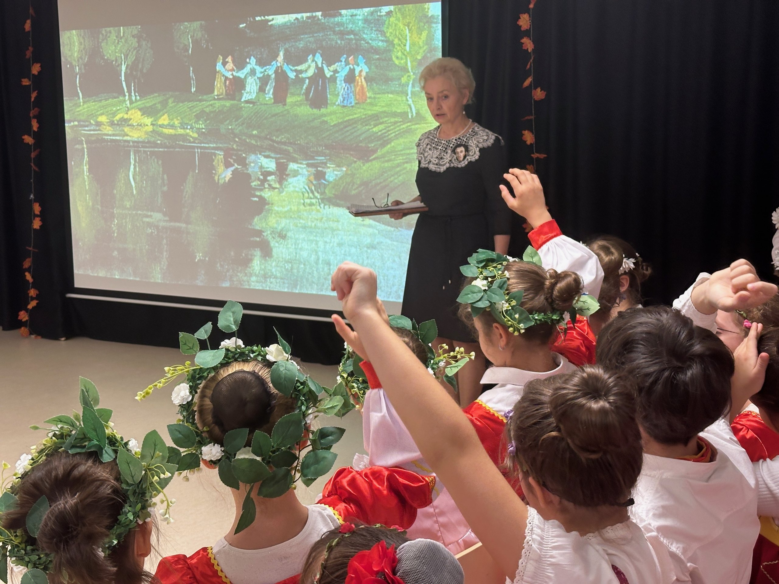 На празднике в школе Екатерина Александровна рассказала о юности Пушкина, о его жизни в Лицее. В зале звучали стихи, песни, ребята показали сценки о юном лицеисте и его друзьях. Мы увидели игры и танцы сельских девиц и парней и даже все вместе перенеслись на бал Царскосельского лицея. И даже увидели кадры из немого фильма о Пушкине и лицеистах почти 100-летней давности. А ещё мы узнали, что в Лицее выпускался журнал «Лицейский мудрец». Совсем как у нас в школе журнал «ЖУК»!